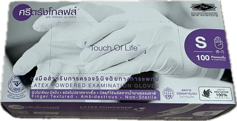 | 600-4612-101-101 | LX-SD-S | Latex examination gloves powdered, purple box, S, Sritrang | 100 Pc./Box | ฿143 ฿170 |