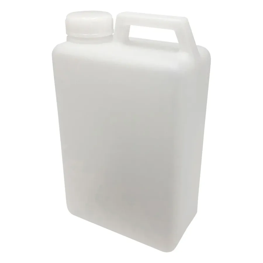 This flat square plastic can is equipped with a convenient handle for easy carrying. It offers excellent chemical resistance and is suitable for a wide range of applications.