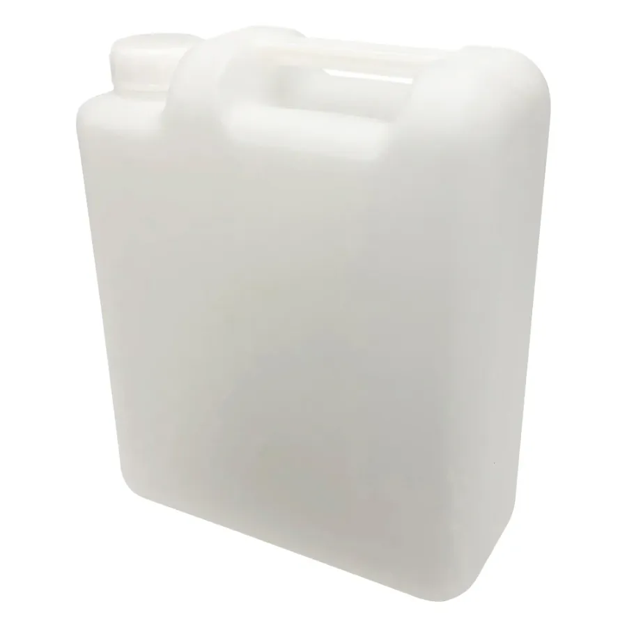 This flat square plastic can is equipped with a convenient handle for easy carrying. It offers excellent chemical resistance and is suitable for a wide range of applications.