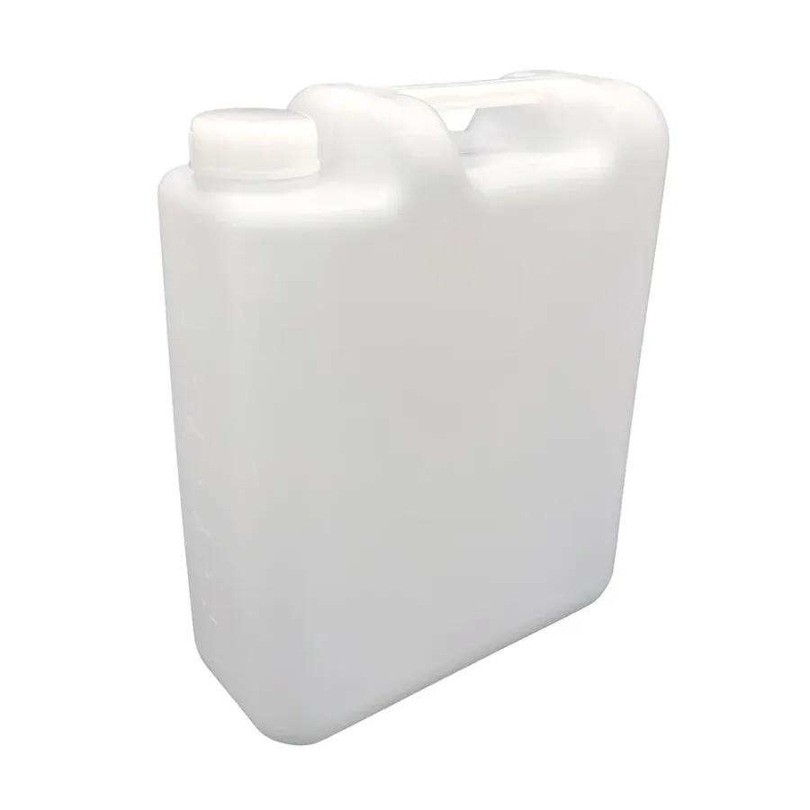 This flat square plastic can is equipped with a convenient handle for easy carrying. It offers excellent chemical resistance and is suitable for a wide range of applications.