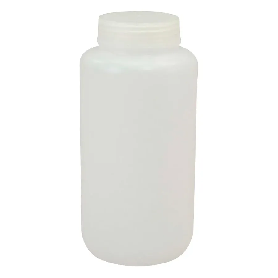Wide-mouth HDPE bottle compliant with GPI screw standard.