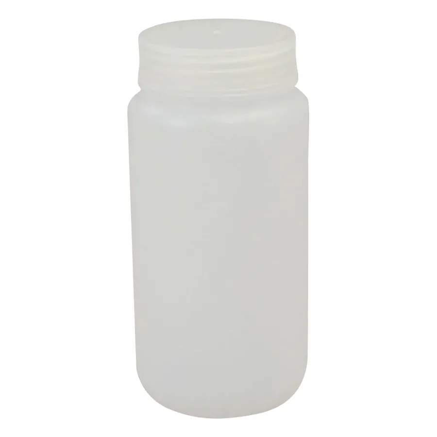 Wide-mouth HDPE bottle compliant with GPI screw standard.