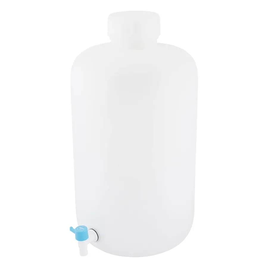 Material: Body/high-density polyethylene (HDPE), cap and inner lid/linear low-density polyethylene (LLDPE), cock/polypropylene (PP)